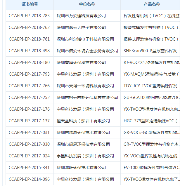 永旺彩票 今天东方信诺整理了一下目前VOC在线监测系统有多少家通过了CCEP环保认证,现在系数一下深圳通过认证的