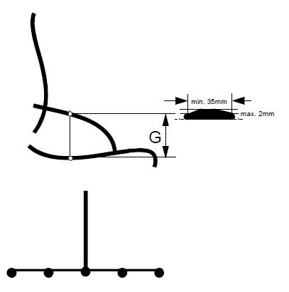 扶手支撑表面(表面曲线深度为2mm处测得)的有效宽度应至少为35mm。